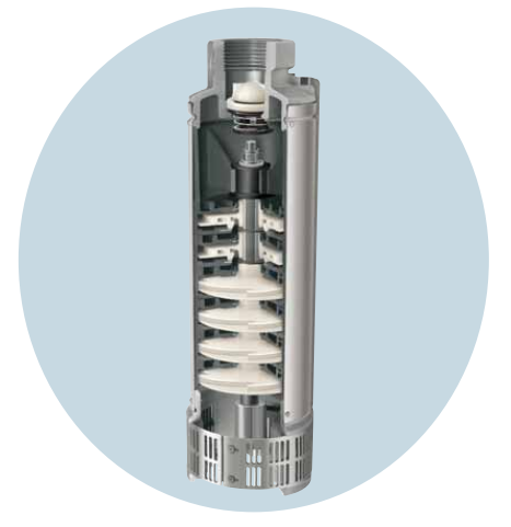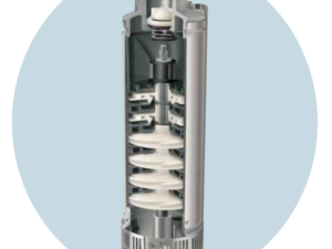 Motobombas centrífugas multiestágios, acopladas a motores elétricos projetados especialmente para funcionar dentro da água, a grandes profundidades.