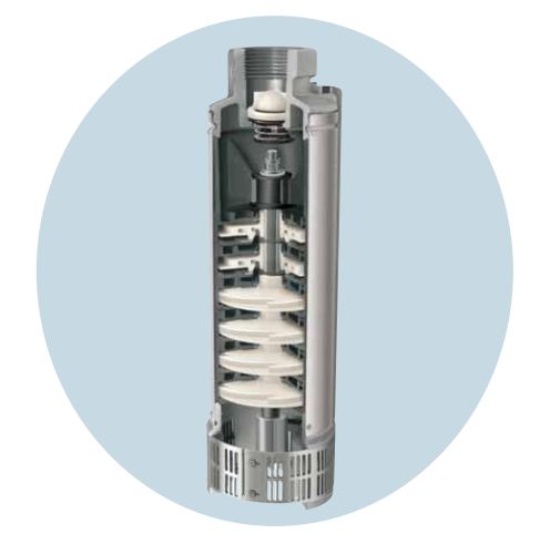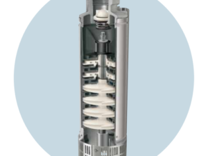 Motobombas centrífugas multiestágios, acopladas a motores elétricos projetados especialmente para funcionar dentro da água, a grandes profundidades.
