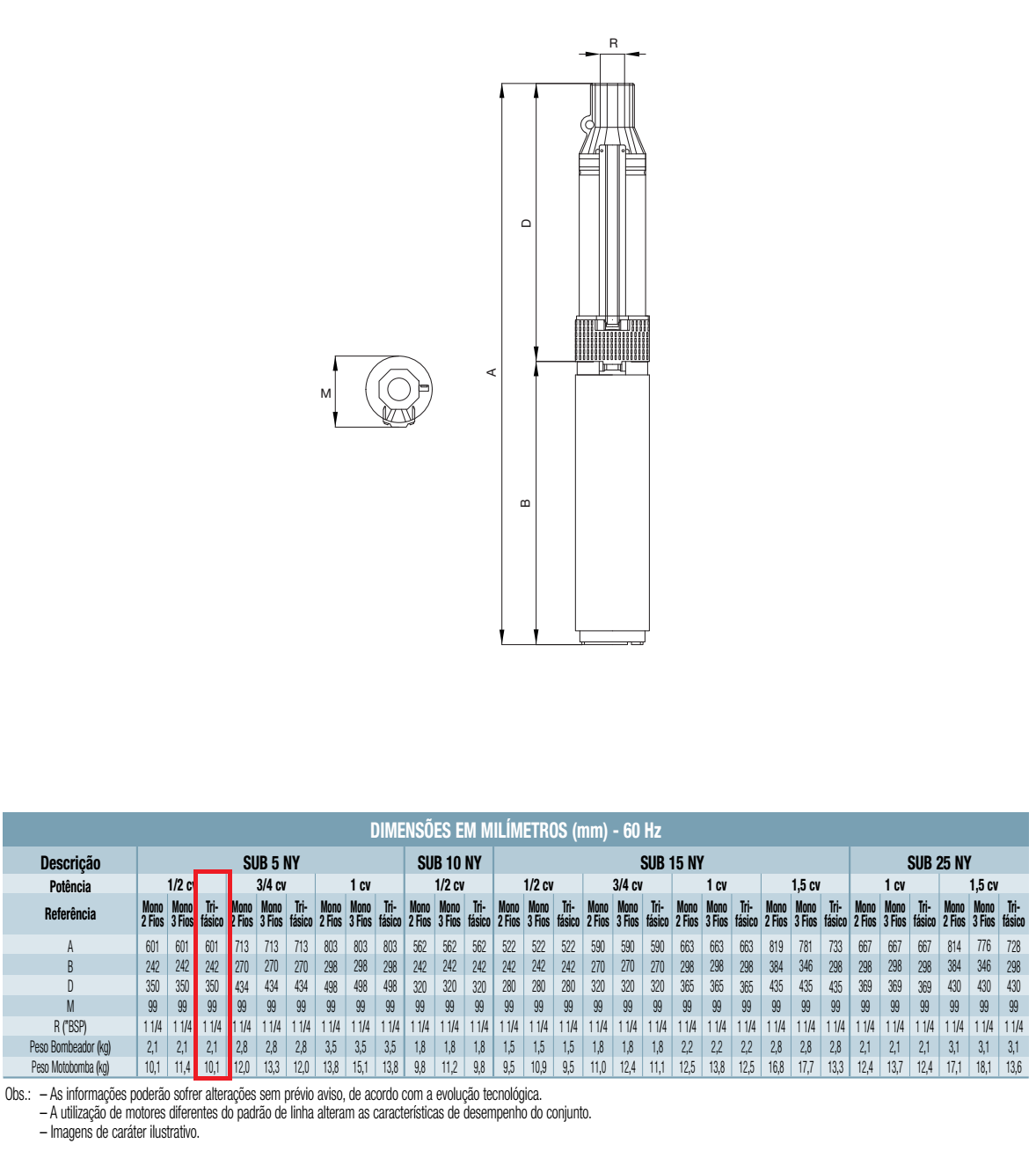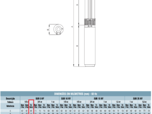 Motobomba Submersa 4″ SUB5-05NY4E8 1/2CV Trif. 230V