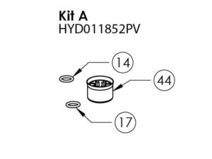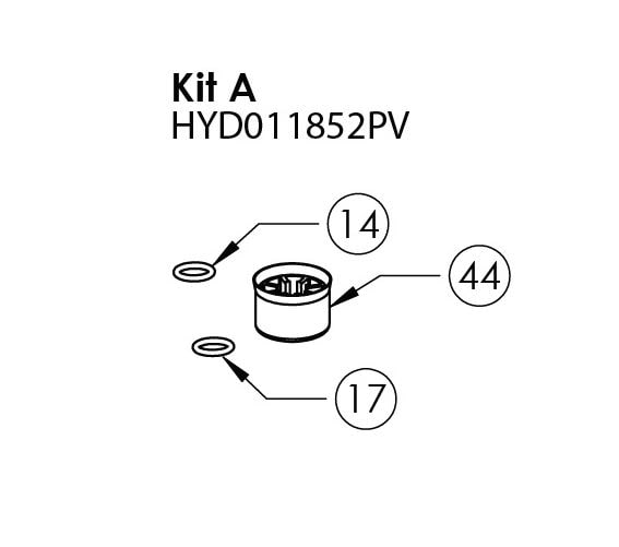 Kit A de reparo do Superdos 30 5%. Contém anéis de vedação (O-rings) e pistão de dosagem (identificação a seguir).