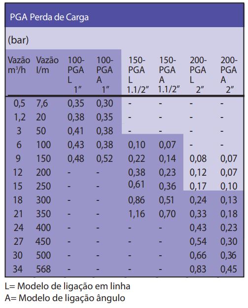 • Pressão de 1,0 a 10,4 bar