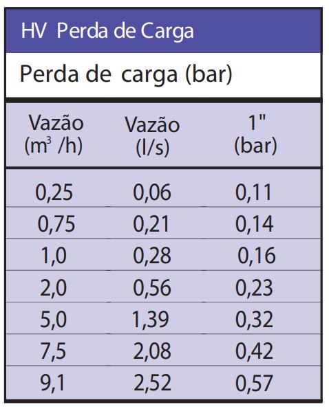 pressão e vazão modelo HVF.